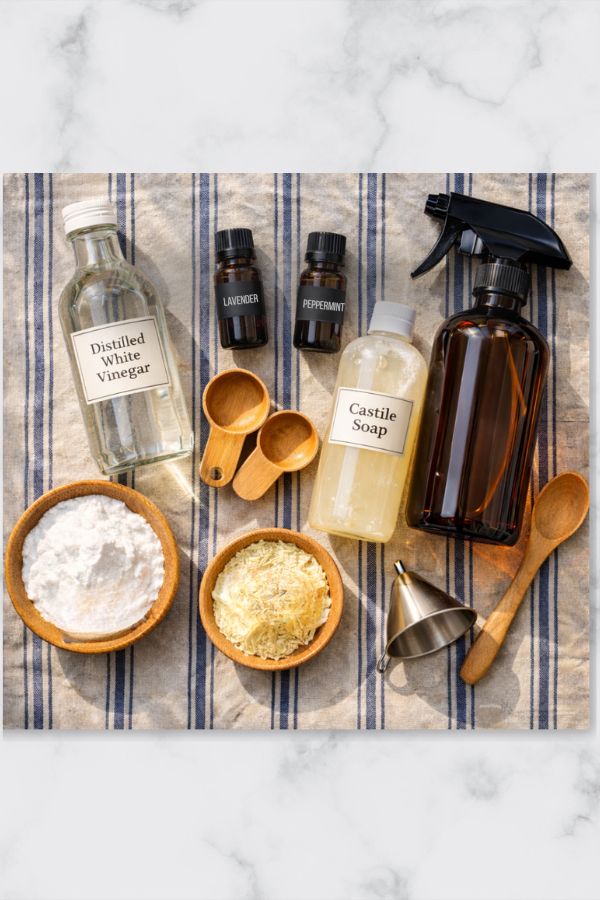 Important pairing note: Don’t mix vinegar and castile soap in the same bottle (they don’t play well together). Use them separately: soap for grime, vinegar for minerals.
